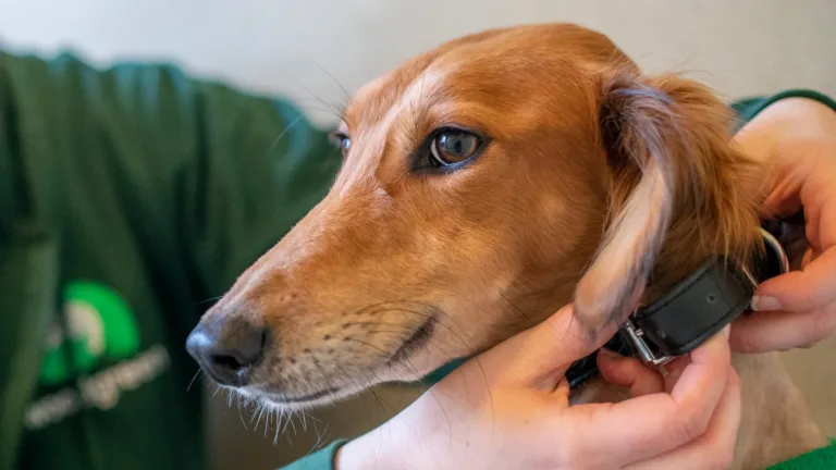 Slowly build up the intensity of the touch, ensuring that you always pair the hold with a treat. As your dog becomes more comfortable, start to give the treat after the touch, and start to hold the collar for longer, and even move your hand around whilst holding the collar. Always go at your dog’s pace, and make sure their comfortable before you move on.